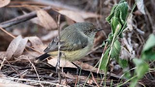 The Weebills (Australia's smallest birds were weaving their way through the foliage. They are pretty hard to photograph because they move erratically.Correction: the birds that I thought were Weebills are in fact Buff-rumped Thornbills, another first for me. I am leaving my original ID in here just to remind myeslf how difficult it is differentiate between the two when you have not had experience with them. The Buff-rumped Thornbill is another first for me.